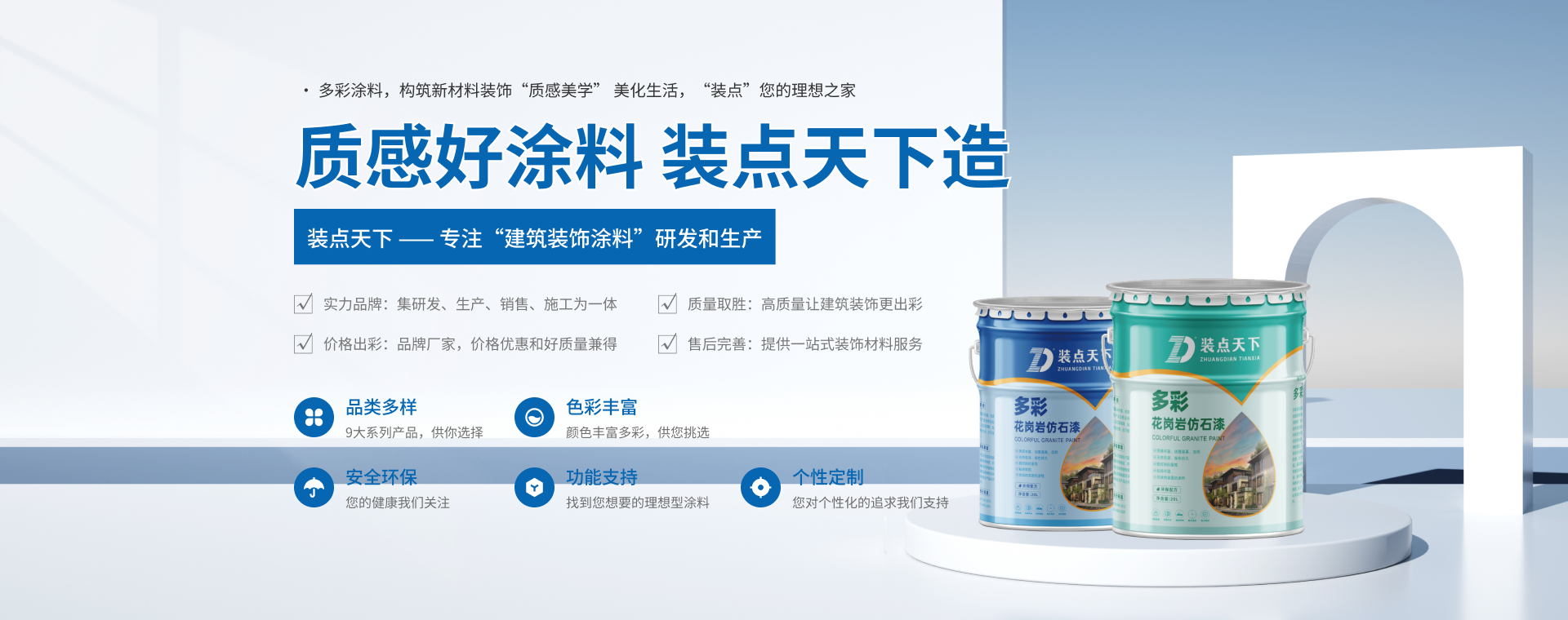 从产品到技术服务支持,我们积累了丰富的经验,不仅让客户选到合适的建筑装饰涂料,还为客户提供完善的售后服务,支持7天退换货和定制服务,可建立长期合作关系。